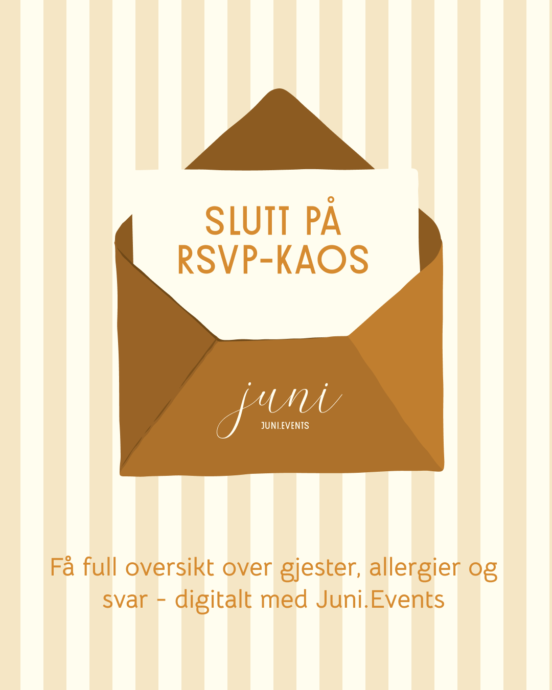 Juni gjør bryllupsplanleggingen enkel. Lag en personlig bryllupsnettside, send digitale invitasjoner og hold kontroll på gjesteliste og RSVP – alt på ett sted.
